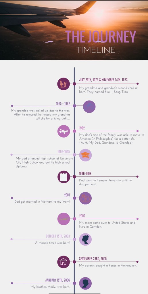 My path to research led from my lived experience as a refugee from Vietnam and then as a student attending public schools in Philadelphia. Growing up in South Philadelphia, I bore witness to my parents’ trauma and their struggles to raise a family without resources. My research with Vietnamese American youth in the Philadelphia area emerges from this context –– having experienced institutionalized trauma and racism – and from my activist work in my community. I created a space in which Vietnamese American youth co-labor (García 2020) and co-produce knowledge in order to disrupt the silence surrounding their own lived experience in the United States. Through a series of workshops I designed with the youth, we collaboratively document, remember, and reflect on our experience being Vietnamese Americans using poetry, storytelling, photography, and writing. The workshops with the youth answered the following questions: