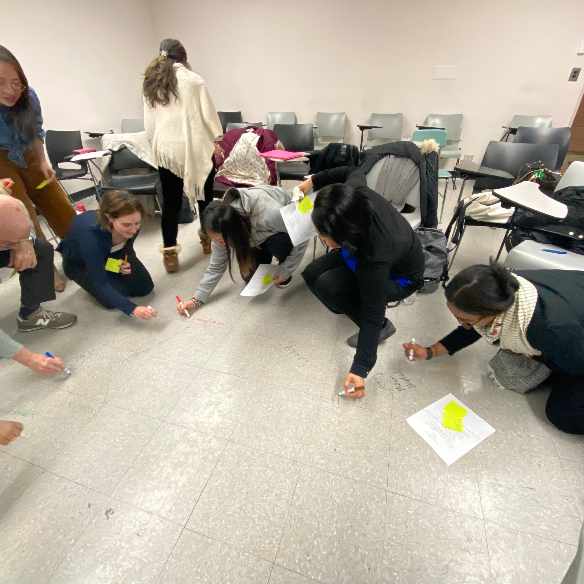 I believe that teaching is about “armed love” (Freire, 1998) and bilingual love (Mignolo, 2000). “Armed love” is more than just providing minoritized students with care and nurture, it is providing them with love that is based on liberatory education and affirming one’s humanity (Bartolomé, 2008). This armed love is linked to Mignolo’s (2000) ideas about “bilingual love.” When students’ entire linguistic repertoire is considered and lovingly related, education can pay attention to what all students know, instead of focusing on simply developing command of linguistic norms and conventions that have been imposed by school bureaucrats and social elites. With that in mind, I reject normative ways of teaching and assessing my students. My classroom is like a canvas: We utilize all of the spaces in the classroom. For example, students draw and write on the floor and wall of the classroom. We are engaging in a lively and dynamic co-construction of our understandings as we learn with and from one another. We incorporate many aspects of theater performance into the classroom, such as spoken word and acting. For example, in my Introduction to Academic Writing class, some of my students were shy of speaking and I want them to be more comfortable speaking in the class. I previewed the activity with performances from spoken word artists. Then I followed up with prompts to scaffold my students to write their pieces. The students then performed in front of the class.